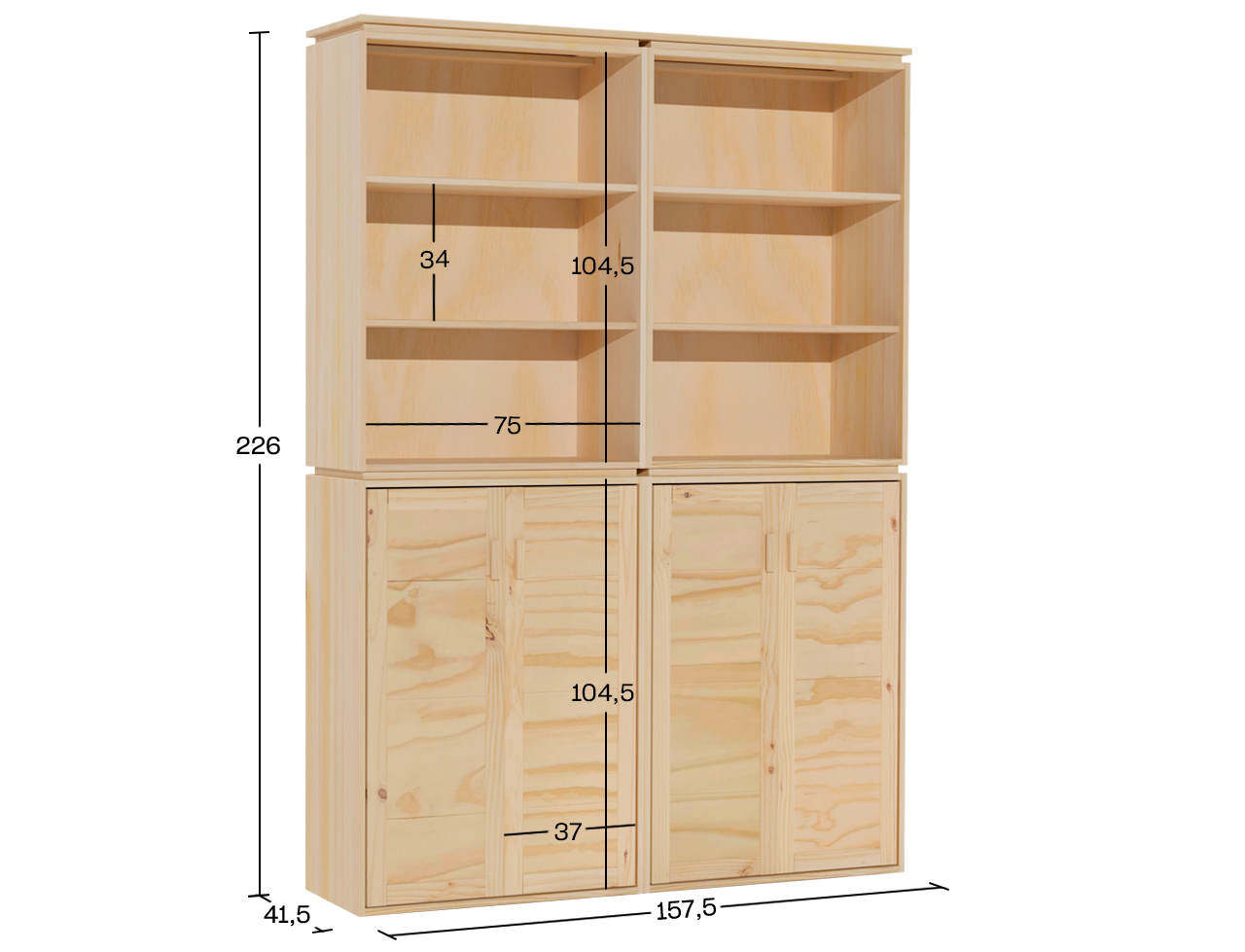 Credenza doppia in legno naturale ecologico, pensata come mobile contenitore per soggiorni, studi o per le stoviglie da cucina. Un mobile ideato per adattarsi ai diversi ambienti della tua casa che permette di organizzare e riporre in modo efficiente, senza rinunciare al design. Ogni dettaglio è stato progettato per offrire durabilità e armonia nello spazio.