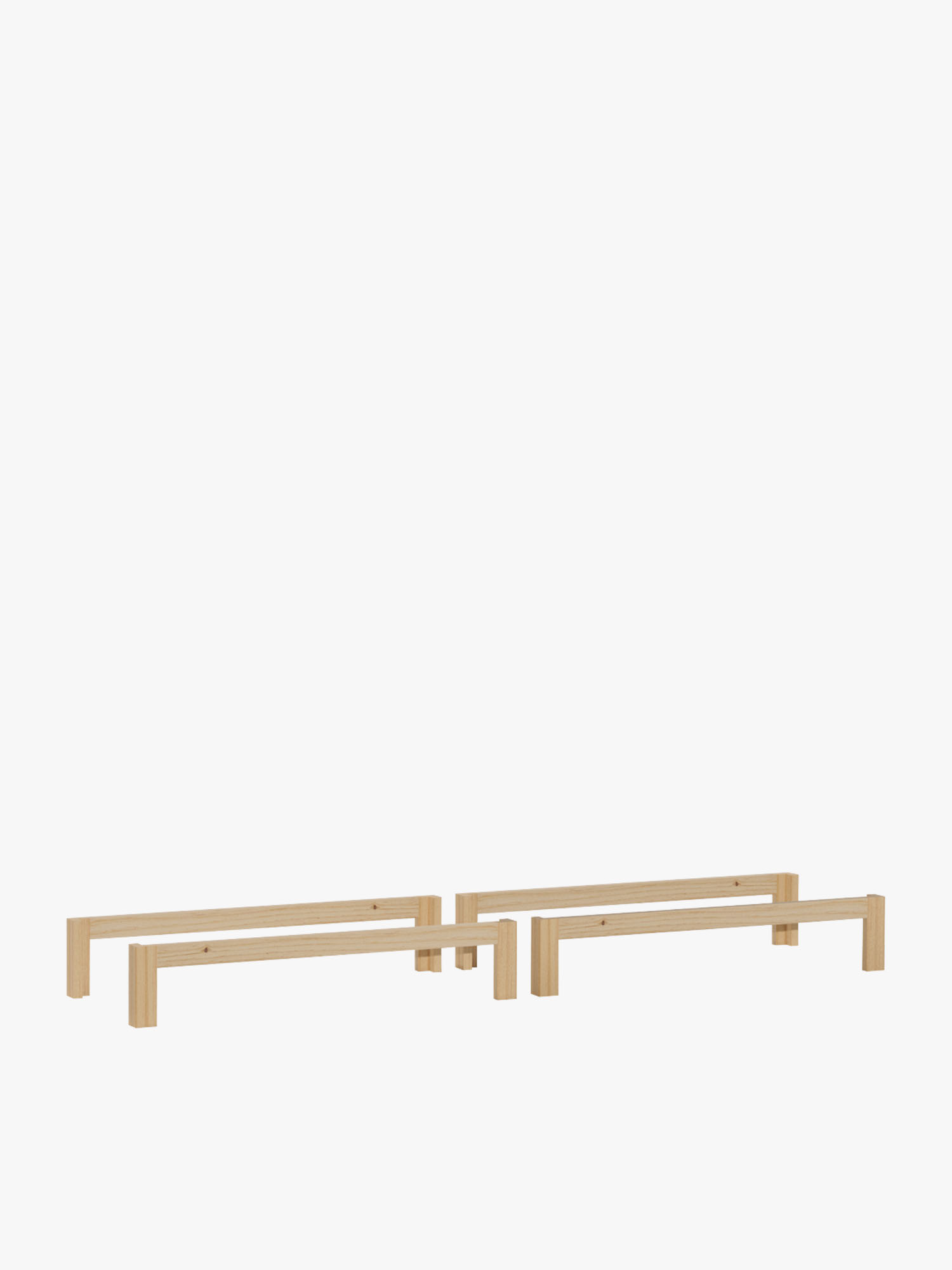 Set di quattro gambe in legno massello naturale per combinazioni modulari da 157; come cassettiere, vetrine, mobili TV, credenze o armadi doppi composti da due moduli da 78.